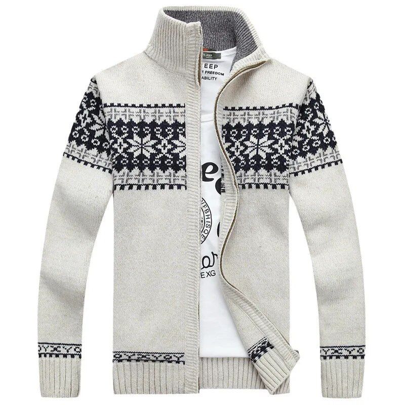 Emiliano Wool Zip-Front Cardigan | Relaxed Fit Collared Cardigan