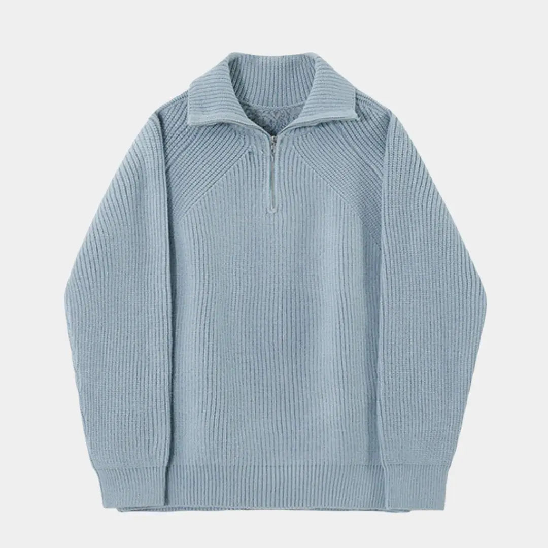 Men’s Sweatshirt – Regular Fit – Cotton Blend – Zip Neck – Stand-Up Collar – Ribbed Hems