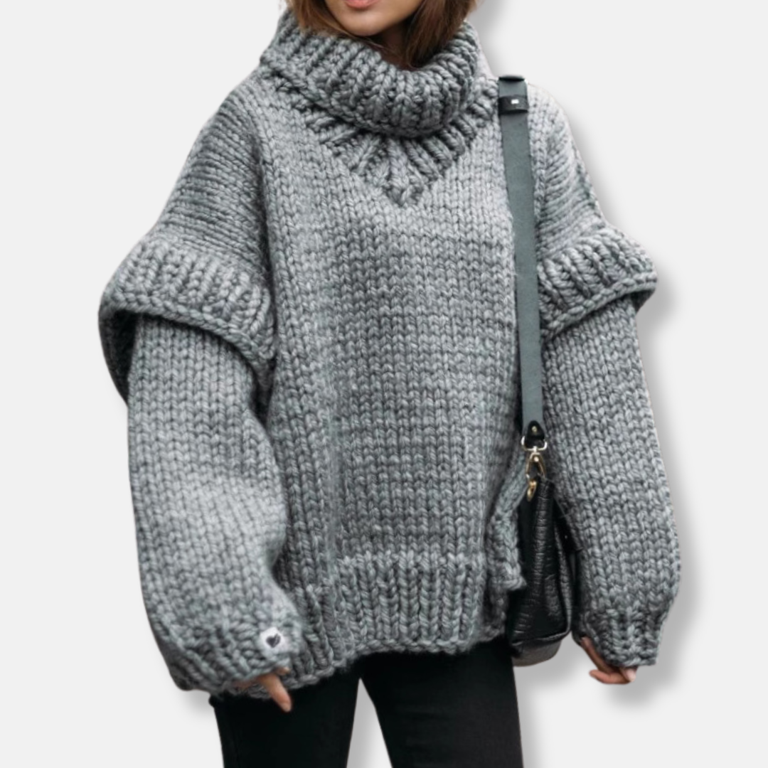 Women’s Pullover Sweatshirt – Oversized Relaxed Fit – Chunky Wool Knit – Ribbed Turtleneck