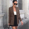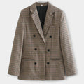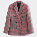 Elevate your wardrobe with our Women's Double-Breasted Blazer - Gingham Pattern - Tailored Fit - Wide Lapels - Elegant Formal Wear. This timeless piece features a classic gingham pattern, tailored fit, and wide lapels, perfect for adding a touch of elegance to any occasion. Ideal for both professional and stylish casual looks.