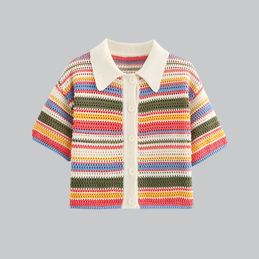 Striped Crochet Knit Cropped Sweater