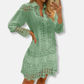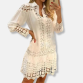 Discover effortless style with our Women's Shirt Dress - Crochet Lace Detail - Collared Neckline - Tiered Skirt - Long Sleeve. This elegant dress features delicate crochet lace, a flattering tiered skirt, and a classic collared neckline. Perfect for adding a touch of sophistication to any occasion.