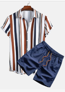 Colored striped shirt & swim shorts for men