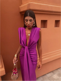 Elegance-urban.com presents the Women's Evening Dress - Plunge Neckline - Draped Front - Sleeveless Fitted Elegant Style. This sophisticated dress features a flattering plunge neckline and a stylish draped front, creating an hourglass silhouette. Perfect for formal occasions, it offers a blend of elegance and modern design.