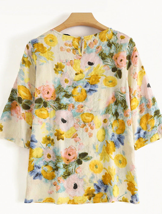 Add a touch of sophistication to your wardrobe with this elegant floral 3/4 sleeve shirt, perfect for both casual and semi-formal settings. The delicate floral design and versatile sleeve length make it an ideal choice for transitioning between seasons. Crafted from soft, breathable fabric, it offers comfort and style for all-day wear. Pair this timeless shirt with skirts, jeans, or trousers for a polished and chic look.