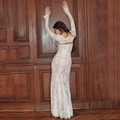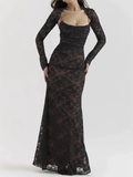 Elegant and sophisticated, this Women's Lace Maxi Dress - Elegant Long Sleeve - Square Neck Formal Evening Gown from Elegance-urban.com is perfect for your next special occasion. This floor-length gown features delicate lace, long sleeves, and a flattering square neckline, creating a timeless and ornate look suitable for formal events and evening wear.