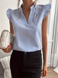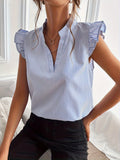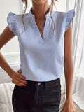 - Design: Relaxed fit with ruffle sleeves and split V-neck