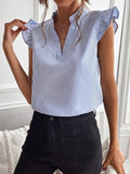 Striped Ruffle Sleeve Split V-Neck Blouse