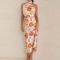 Elegant Floral Halter Midi Dress. This A-line floral midi dress from Elegance-urban.com offers sophisticated style for any occasion. Featuring a flattering halter neck and elegant floral pattern, this dress is perfect for formal events, evening wear, or adding a touch of luxury to your everyday look.