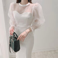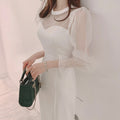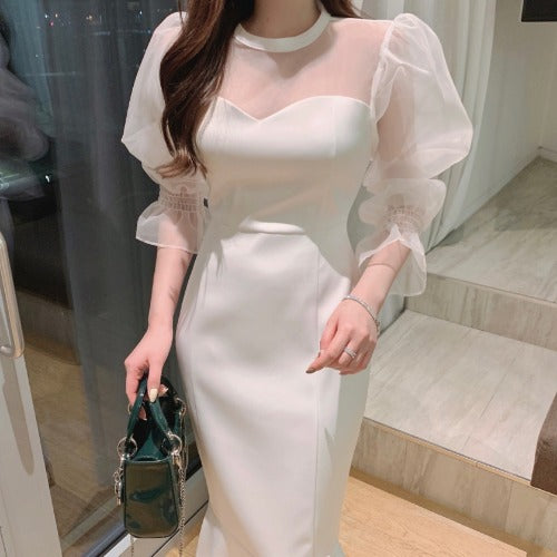 Puff Sleeve Sweetheart Sheer Midi Dress