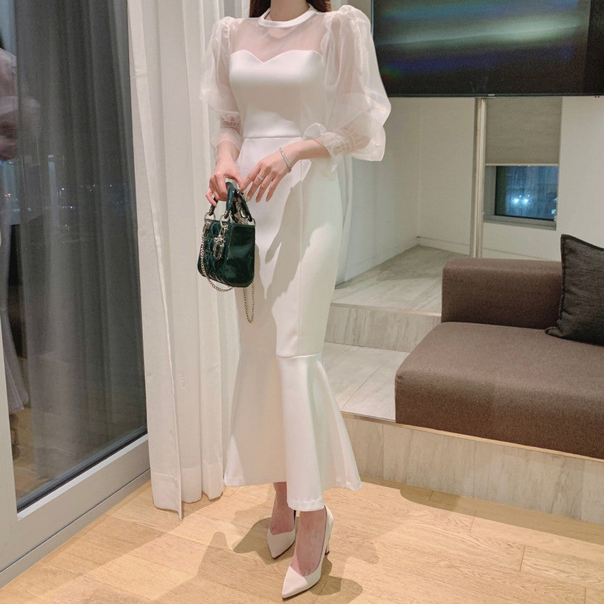 Embrace the allure of sophistication with this Women's Elegant Cocktail Dress. This exquisite dress is perfect for any upscale event and showcases your refined taste and timeless elegance. Crafted with meticulous attention to detail, this dress features sheer long sleeves that add a hint of allure, a flattering mermaid skirt that accentuates your silhouette, and a luxurious design that promises to make you the center of attention. Feel empowered, graceful, and chic—this dress isn’t just a piece of clothing; it’s an experience.