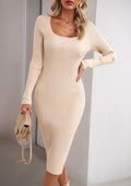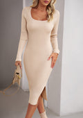 Elegance-urban.com presents the Women's Ribbed Knit Dress - Slim Fit - Scoop Neck - Long Sleeve with Side Slit. This stylish and comfortable dress features a flattering slim fit, elegant scoop neckline, and long sleeves, finished with a chic side slit. Perfect for day or evening wear.