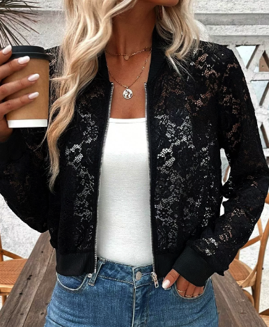 This full zip lace casual jacket for women is a perfect blend of comfort and feminine charm. The delicate lace detailing adds a unique, stylish touch to the classic zip-up design, making it a versatile addition to your casual wardrobe. Ideal for layering over casual outfits, it offers both warmth and a chic, fashionable look. Pair it with your favorite jeans or dresses for a trendy, sophisticated look that’s perfect for any casual occasion.