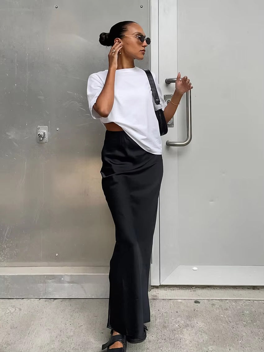 Pair this skirt with a tucked-in blouse and pointed-toe heels for a sophisticated office ensemble. For an evening affair, complement it with a delicate lace top and statement jewelry to exude effortless charm.