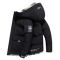- Design: Insulated quilted jacket with a fixed hood and multiple pockets.