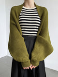 Isla Wool Ribbed Cropped Shrug Sweater | Relaxed Fit Long Sleeve Sweater