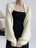 This relaxed fit shrug sweater for women, crafted from wool, offers a cropped length and long sleeves, featuring a ribbed texture and an open front design, ideal for casual wear.