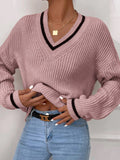 The Women’s Knitted Sweater – Relaxed Fit – V-Neck – Ribbed Texture – Casual Wardrobe Staple is your new go-to for cozy style. This V-neck sweater features a relaxed fit and ribbed texture, perfect for everyday casual wear. Stay warm and stylish with this wardrobe essential!