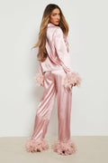 Elevate your loungewear game with the 'Luxury Satin Sleepwear Set' from Elegance-urban.com. Crafted from premium satin, this ultra-soft sleepwear set is adorned with delicate feather trims, marrying sophistication with cozy comfort. Perfect for unwinding after a long day, this set ensures you relax in style without compromising on luxury.