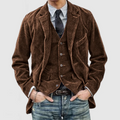 Men’s Two-Piece Blazer and Vest Set – Relaxed Fit Blazer – Tailored Vest – Corduroy Texture