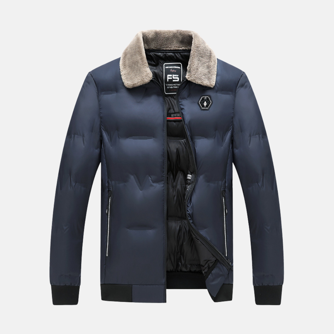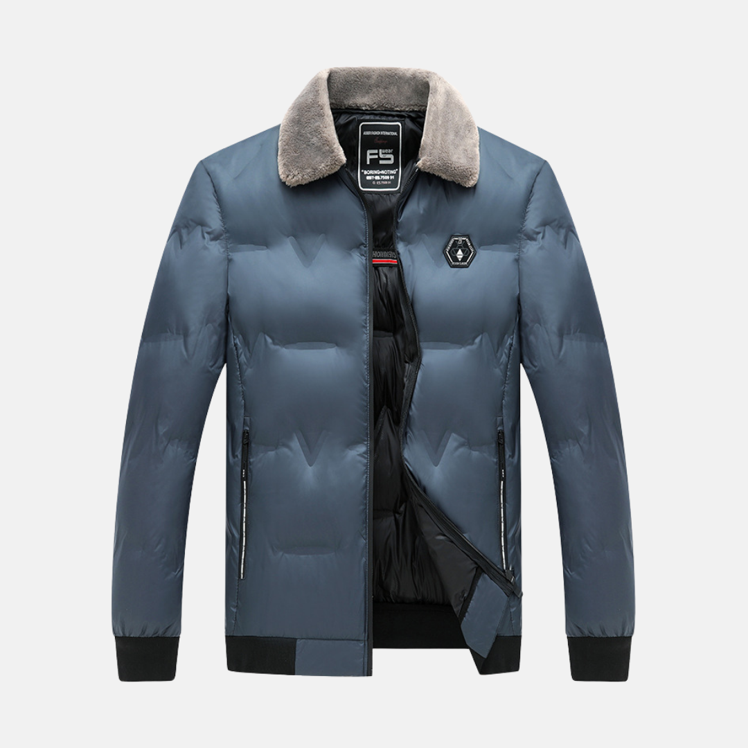 Men’s Bomber Jacket - Padded - Faux Fur Collar - Ribbed Trim