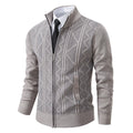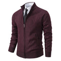 Men’s Cardigan Jacket – Wool Knit – Tailored Fit – Stand Collar – Zipper Front