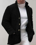 Men’s Cardigan – Relaxed Fit – Chunky Knit – Standing Collar – Button Front – Patch Pockets