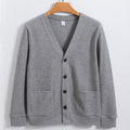 Men's Knit Cardigan: Experience ultimate comfort with our Men’s Cardigan – Relaxed Fit – V-Neck – Button Front with Pockets by Elegance-Urban. This versatile knit offers a relaxed fit, classic V-neck design, and convenient pockets, perfect for effortless style.
