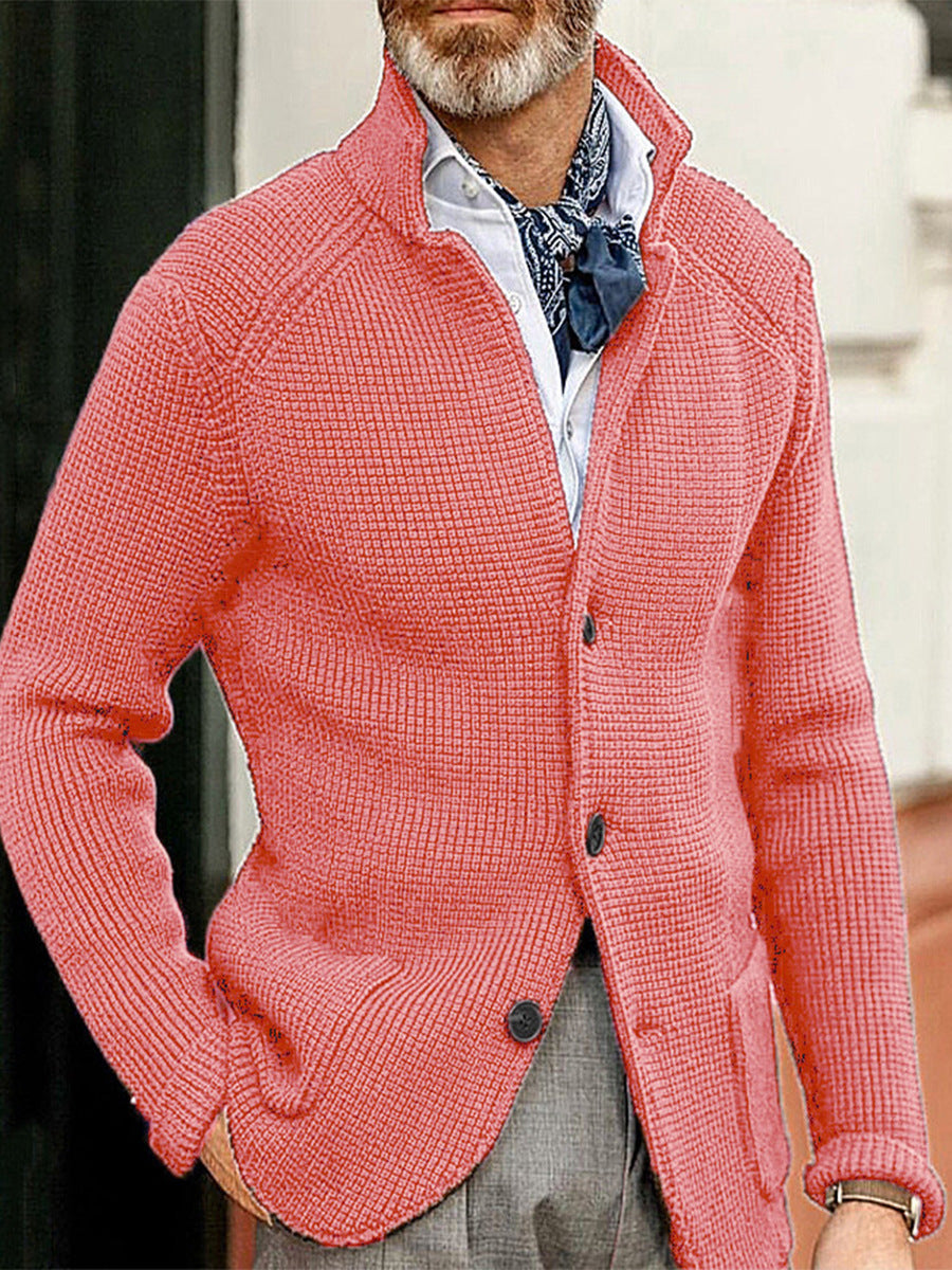 Men’s Cardigan – Slim Fit Textured Knit – Stand-up Collar – Button Front – Patch Pockets