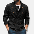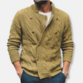 Men’s Cardigan – Tailored Fit – Cable Knit Wool Blend – Double-Breasted – High Collar