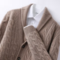 Men’s Cardigan – Wool Knit – Regular Fit – Cable Pattern – Shawl Collar – Button Front