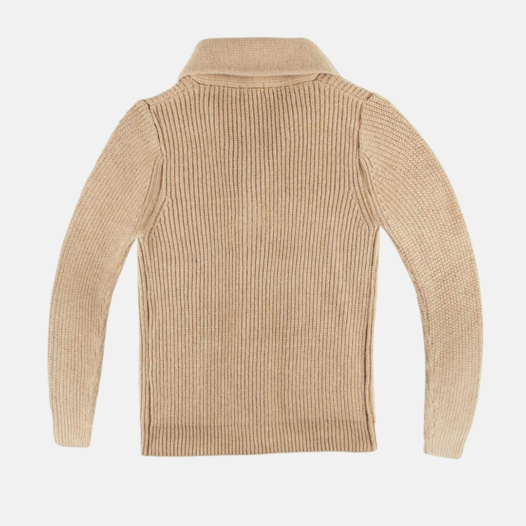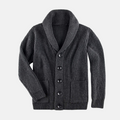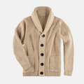 Men’s Coat – Ribbed Knit Texture – Shawl Collar – Regular Fit – Button Closure – Pockets