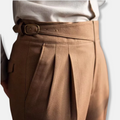 Men’s Trousers – Wool Blend – High Waist – Straight Leg – Pleated Front Fit by Elegance-Urban. These tailored fit trouser feature a high waist and straight leg design with a pleated front for a classic and elegant silhouette. Crafted from a refined wool blend, they offer both comfort and a polished appearance, perfect for formal occasions.