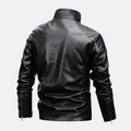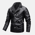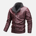 Men’s Faux Leather Jacket – Regular Fit – Shearling Lined – Quilted Shoulders – Dual Closure