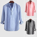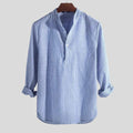 Men’s Henley Shirt – Relaxed Fit – Long Sleeve – Band Collar – Striped. This striped, long-sleeve Henley offers a relaxed fit and breathable blend for ultimate comfort. The band collar adds a touch of modern style to this versatile casual staple.