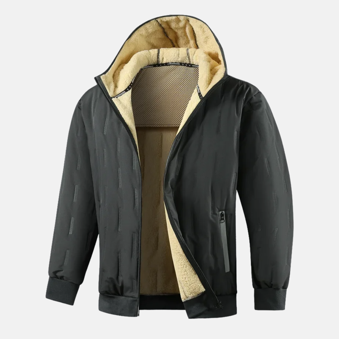 Men’s Hooded Coat – Plush Lining – Relaxed Fit – Ribbed Trim – Zip Pockets