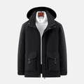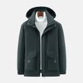 Men’s Hooded Jacket – Insulated Padded – Mid-Length – Zip Snap Closure – High Collar