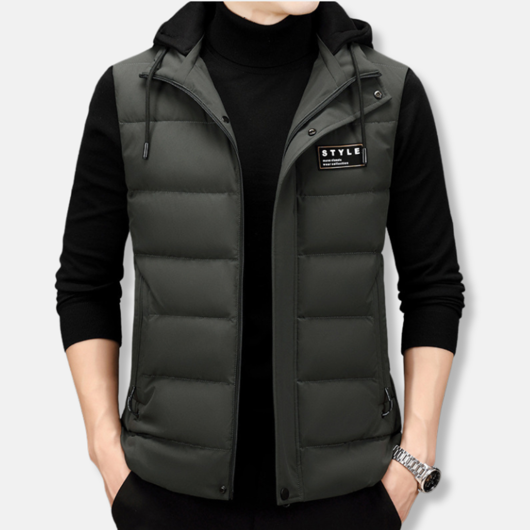 Men’s Hooded Vest – Quilted Down – Regular Fit – Sleeveless Zip Layer with Pockets