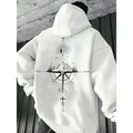 Men’s Hoodie – Regular Fit – Cotton – Compass Print – Drawstring Hood – Casual Wear
