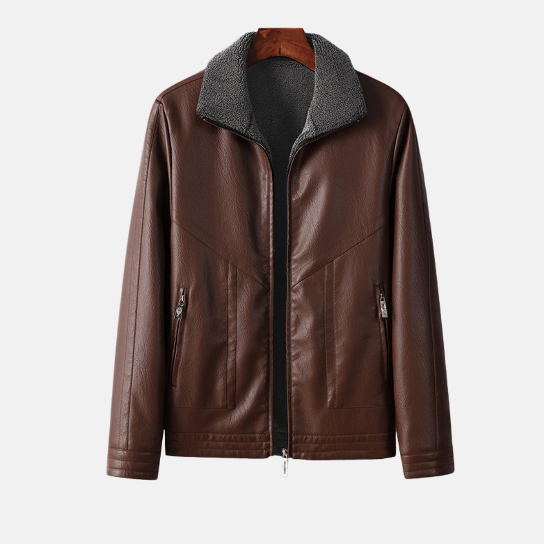 Men’s Jacket – Regular Fit – Faux Leather – Fleece Lined – Reversible – Zippered Pockets