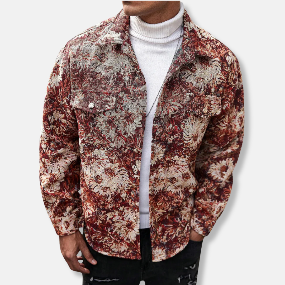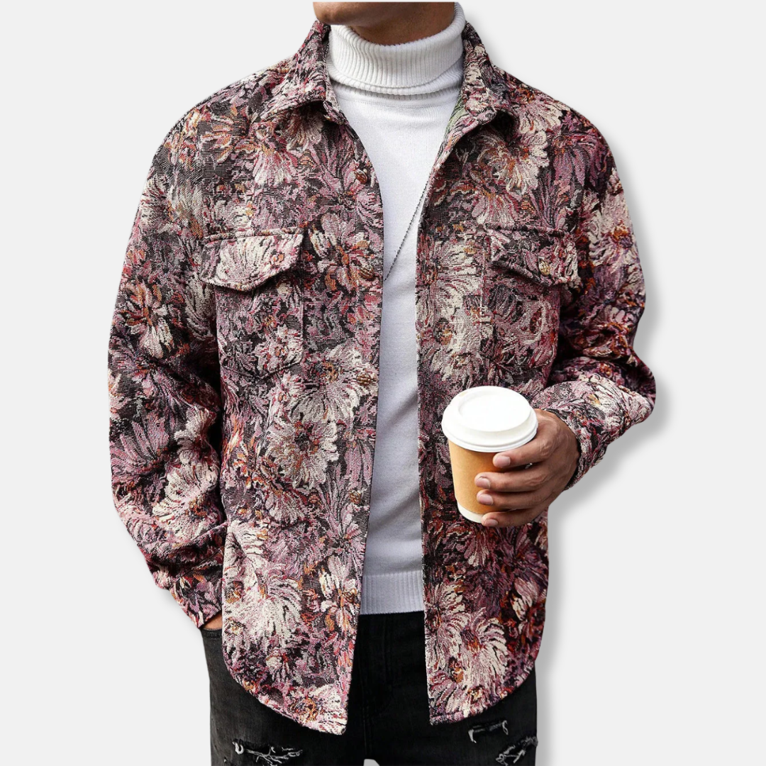 Men’s Jacket – Relaxed Fit – Woven Jacquard Fabric – Long Sleeve – Button Pockets