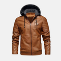 Men’s Leather Jacket – Slim Fit – Quilted Shoulders – Plush Hood – Zipper Closure