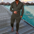 Men’s With Two-Piece Leisure Suit – Slim Fit – Long Sleeve Polo – Breathable with 3D Print Pattern