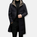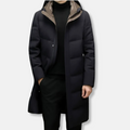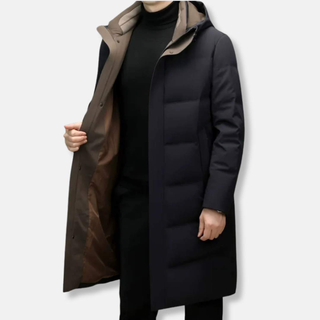 Men’s Long Down Jacket – Relaxed Fit – Quilted Design – Hooded – Full Length Warmth