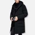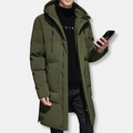 Men’s Long Jacket – Quilted Insulation – Hooded – Regular Fit – Ribbed Cuffs – Zip Front