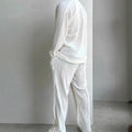 Elevate your off-duty style with this minimalist pleated lounge set. Designed with comfort and modern flair in mind, it features a flowy button-down shirt and wide-leg pants with an elastic waist. Perfect for casual weekends, lounging at home, or layering for a laid-back streetwear vibe.