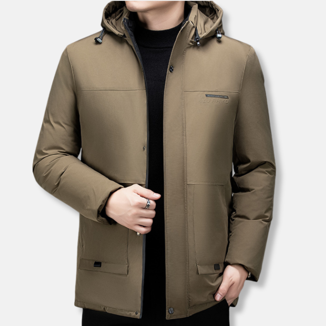 Stay warm and stylish with the Men’s Mid-Length Coat – Padded Synthetic – Hooded with Drawstring – Zip Button Front from Elegance-Urban. This insulated coat offers excellent protection from the cold with a sleek design, adjustable hood, and secure zip and button closure. Perfect for everyday wear during the colder months!