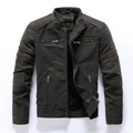 Men’s Motorcycle Jacket – Fleece Lined – Quilted Shoulders – Zipper Pockets – Tailored Fit