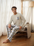 Men’s Two-Piece Pajama Set – Relaxed Fit – Crew Neck Top – Plaid Pocket – Straight Leg Pants