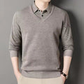 Men’s Pullover Sweater – Classic Fit – Fleece Lined – V-Neck with Polo Collar